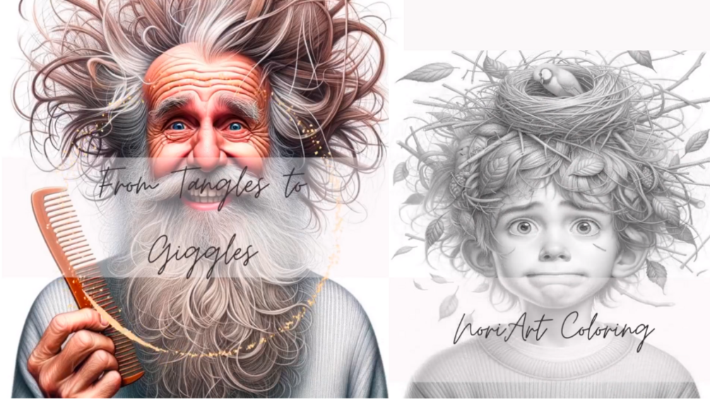 37 "From Tangles to Giggles: A Joyful Hair Affair" Grayscale Coloring Pages